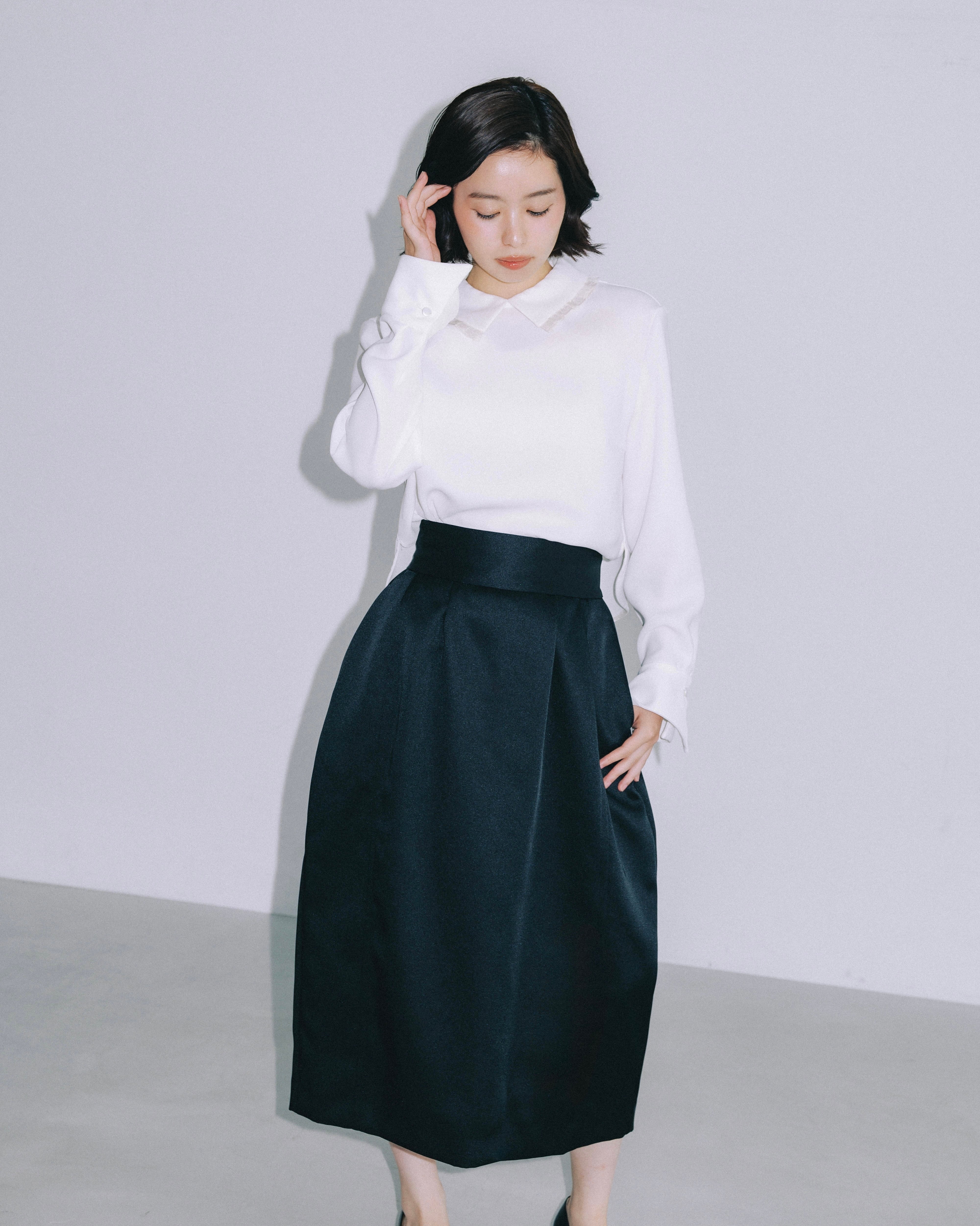 一枚でお召し頂くのはもちろん、ニットやジャケットとレイヤードして襟元を覗かせれば、一気に洗練されたコーディネートが完成します。